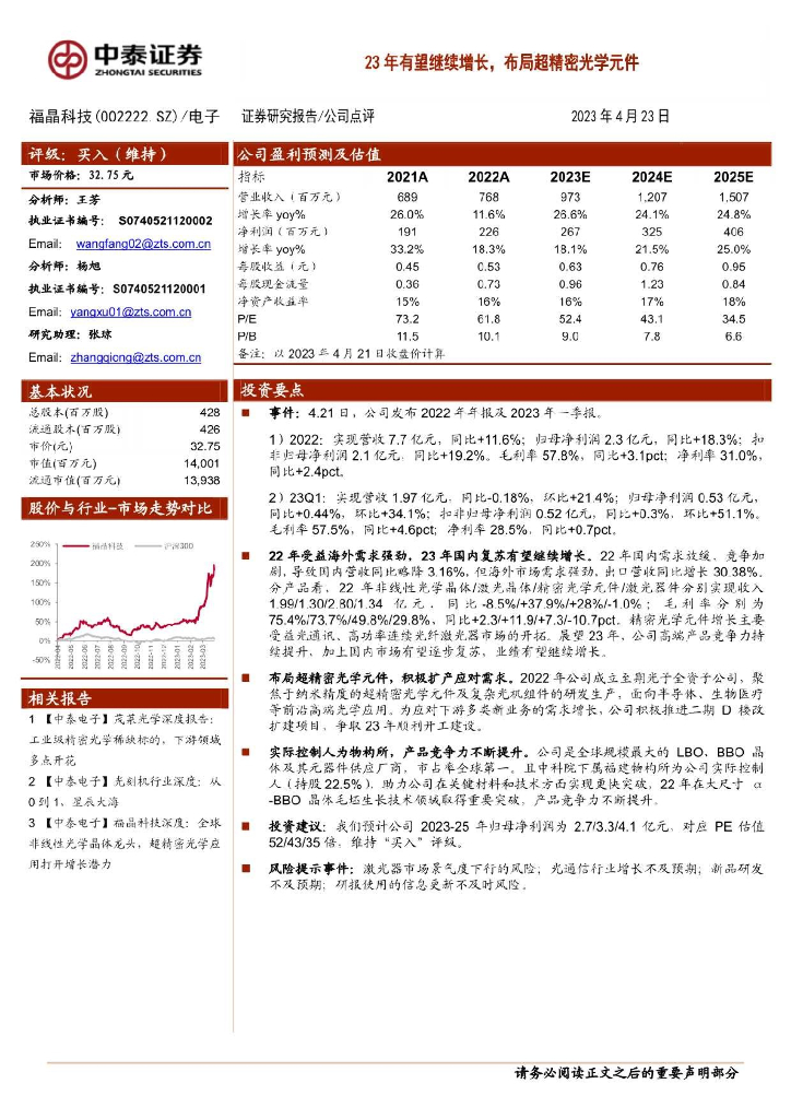 中泰证券:福晶科技(002222)-23年有望继续增长,布局超精密光学元件.pdf