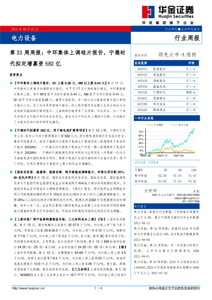华金证券:电力设备第33周周报:中环集体上调硅片报价,宁德时代拟定增募资582亿.pdf
