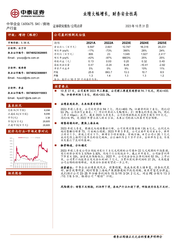 中泰证券:中华企业(600675)-业绩大幅增长,财务安全性高.pdf