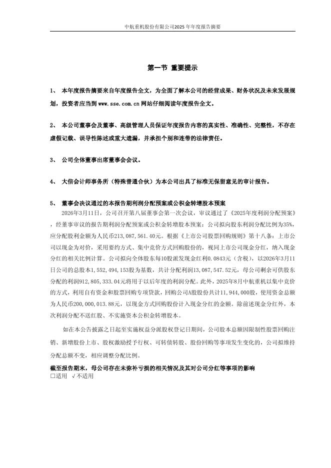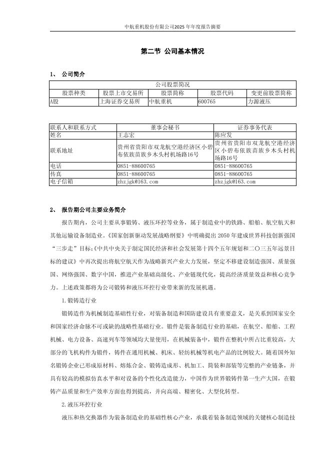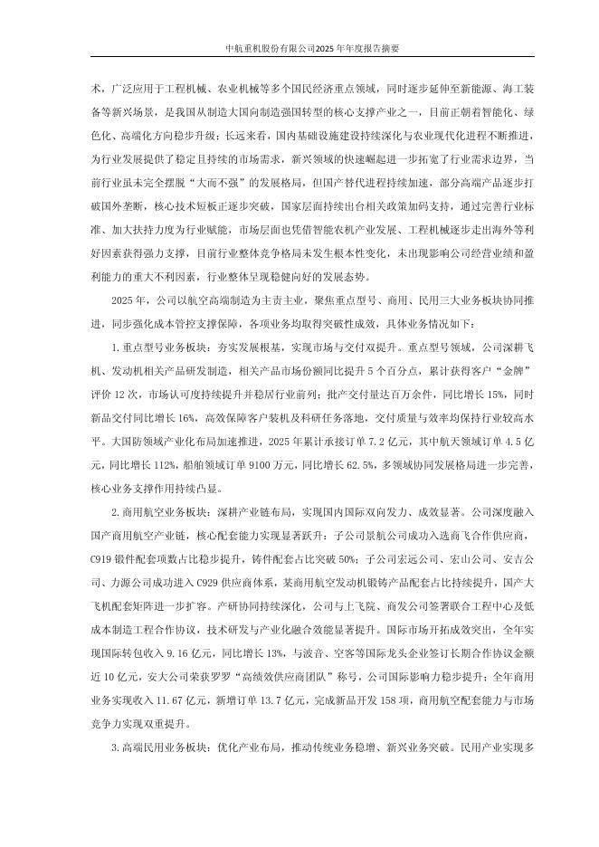 600765-中航重机:中航重机2025年年度报告摘要.pdf
