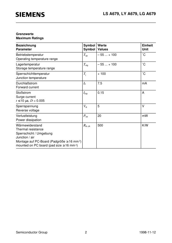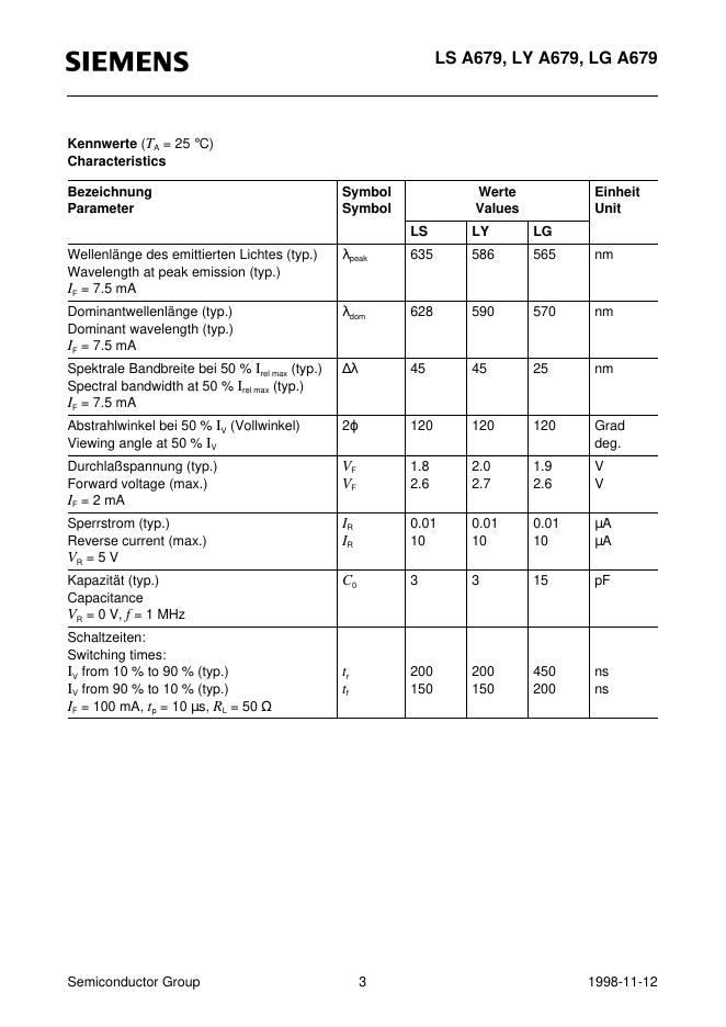 SIEMENS LC SIDELED Low Current LED LS A679, LY A679, LG A679 数据手册.pdf