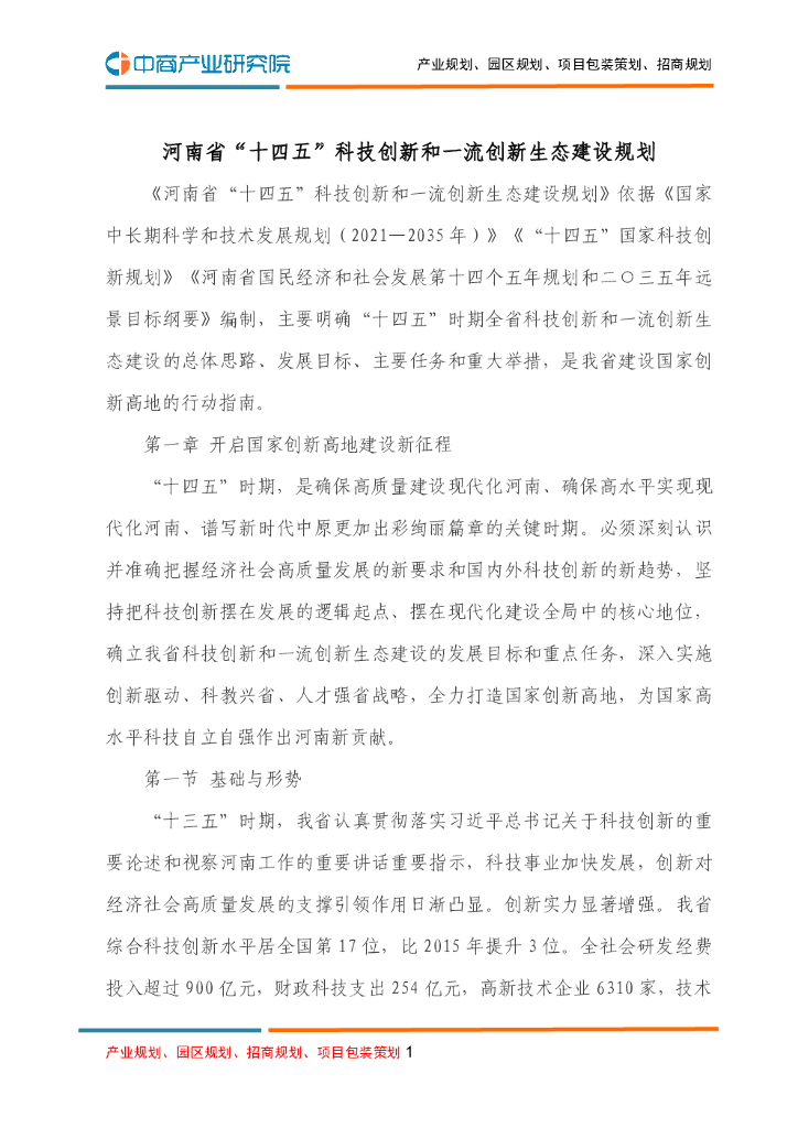 河南省“十四五”科技创新和一流创新生态建设规划.pdf
