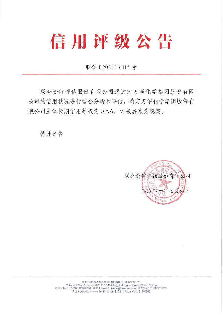 联合资信:万华化学集团股份有限公司主体长期信用评级报告及跟踪评级安排.pdf