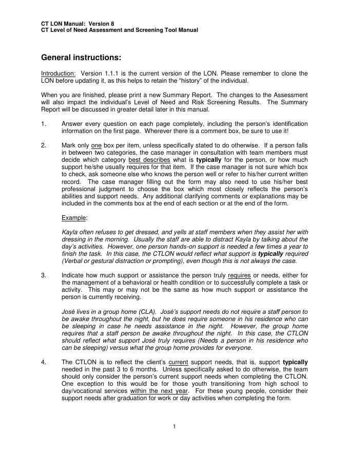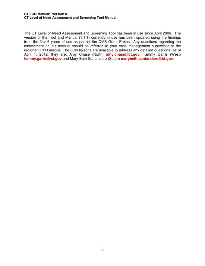 CT LON Manual: Version 8 CT Level of Need Assessment and Screening Tool Manual.pdf