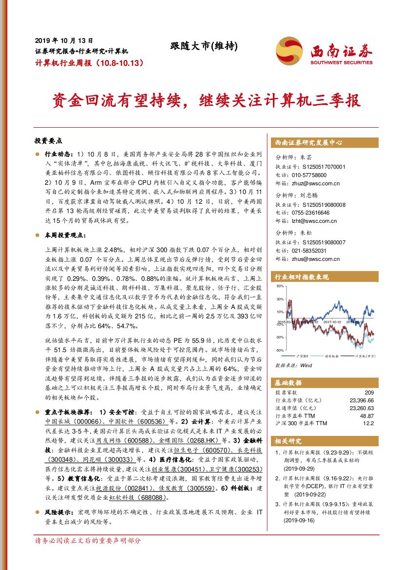 西南证券:计算机行业周报:资金回流有望持续,继续关注计算机三季报.pdf