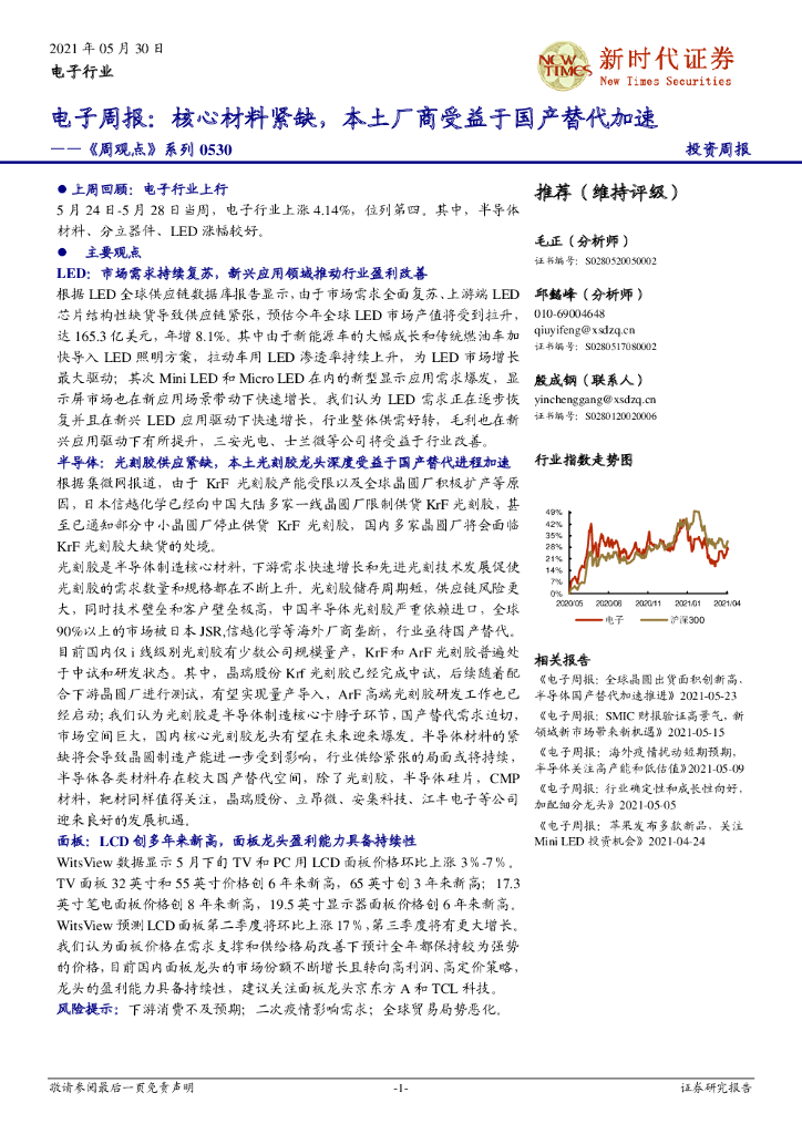 新时代证券:电子周报: 核心材料紧缺,本土厂商受益于国产替代加速.pdf