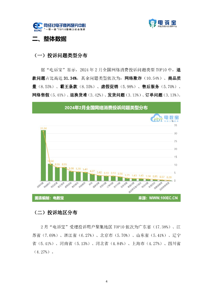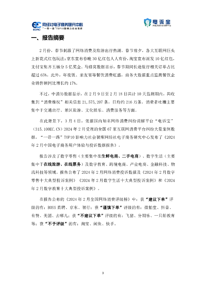 网经社电子商务研究中心:2024年2月中国电子商务用户体验与投诉数据报告.pdf