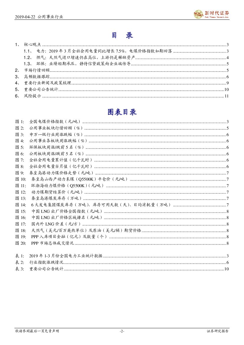 新时代证券:公用事业及环保行业周报:2019年3月全社会用电量同比增长7.5%,煤价中枢如期回落.pdf