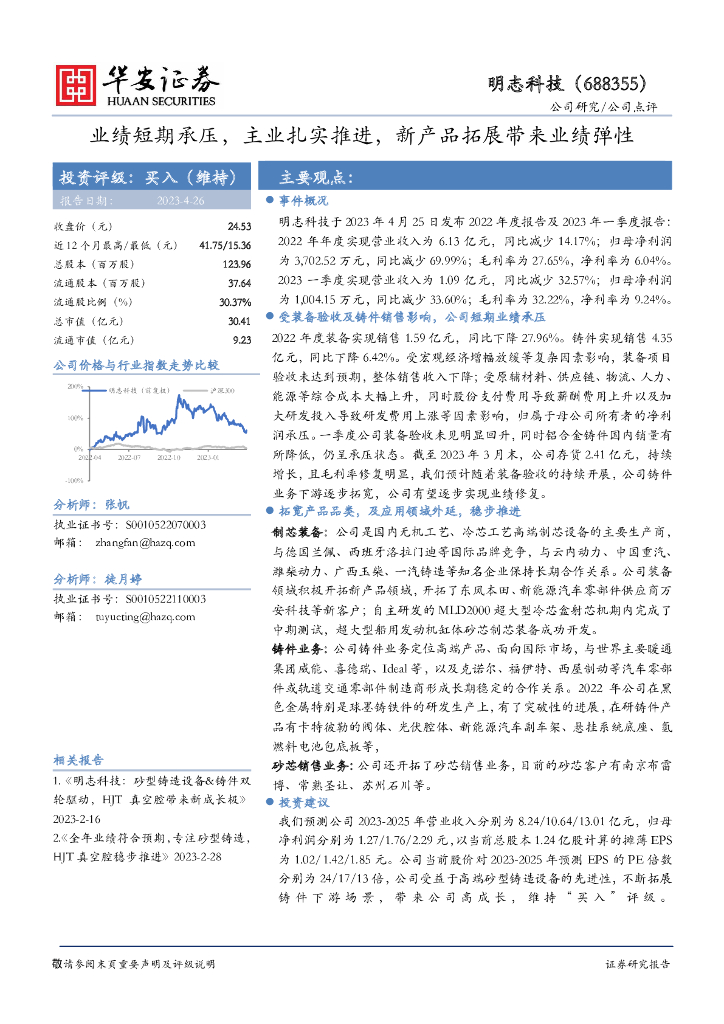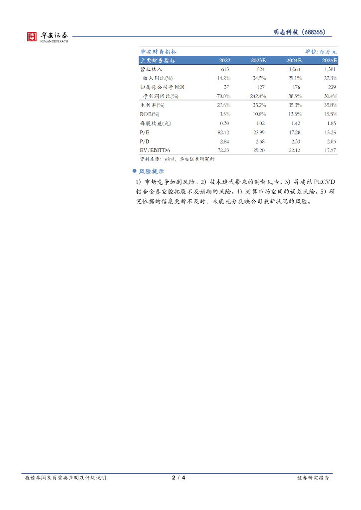 华安证券:明志科技(688355)-业绩短期承压,主业扎实推进,新产品拓展带来业绩弹性.pdf