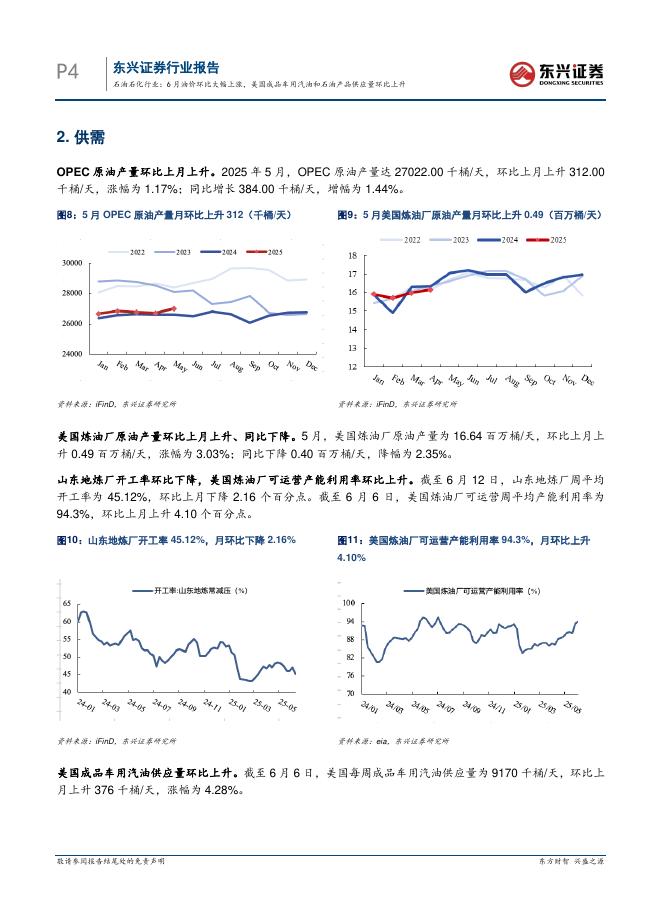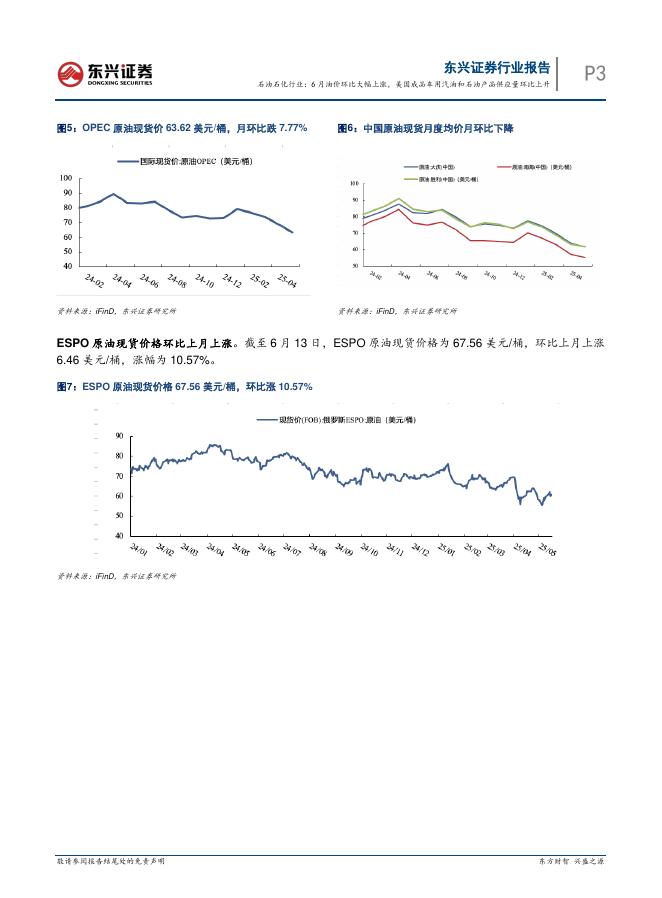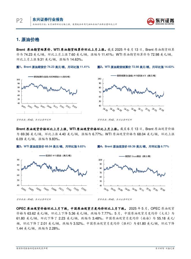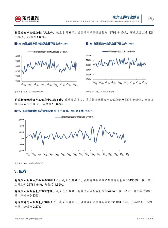 东兴证券:石油石化行业:6月油价环比大幅上涨,美国成品车用汽油和石油产品供应量环比上升.pdf