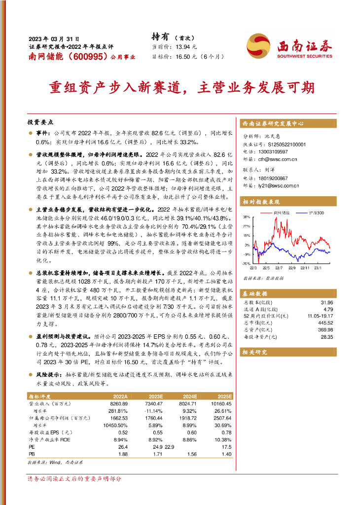 西南证券:南网储能(600995)-重组资产步入新赛道,主营业务发展可期.pdf
