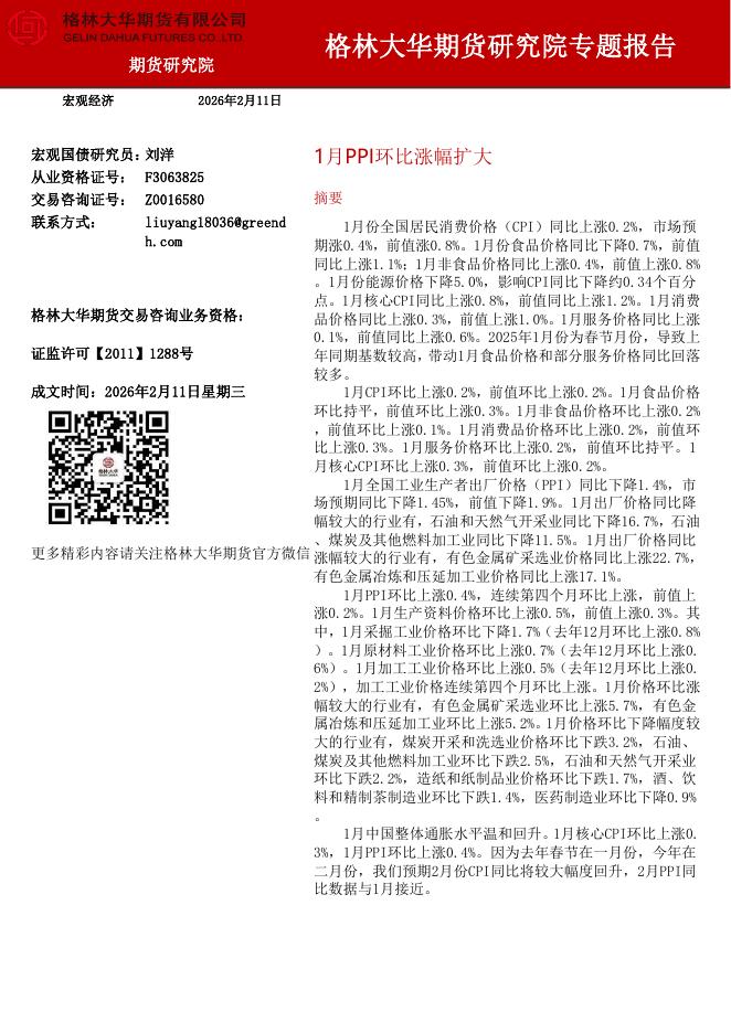 格林期货:1月PPI环比涨幅扩大-260211.pdf