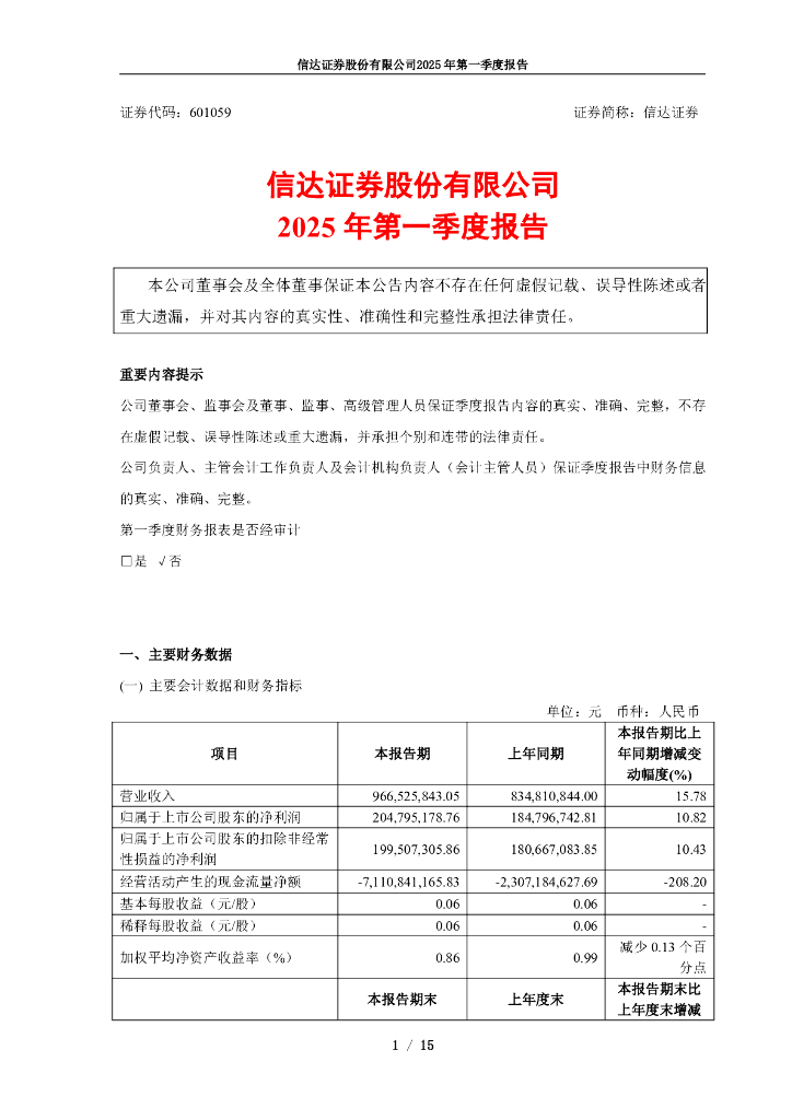601059-信达证券:信达证券股份有限公司2025年第一季度报告.pdf