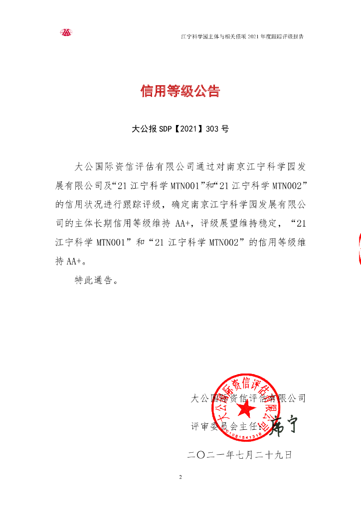 大公:南京江宁科学园发展有限公司主体信用评级报告.pdf