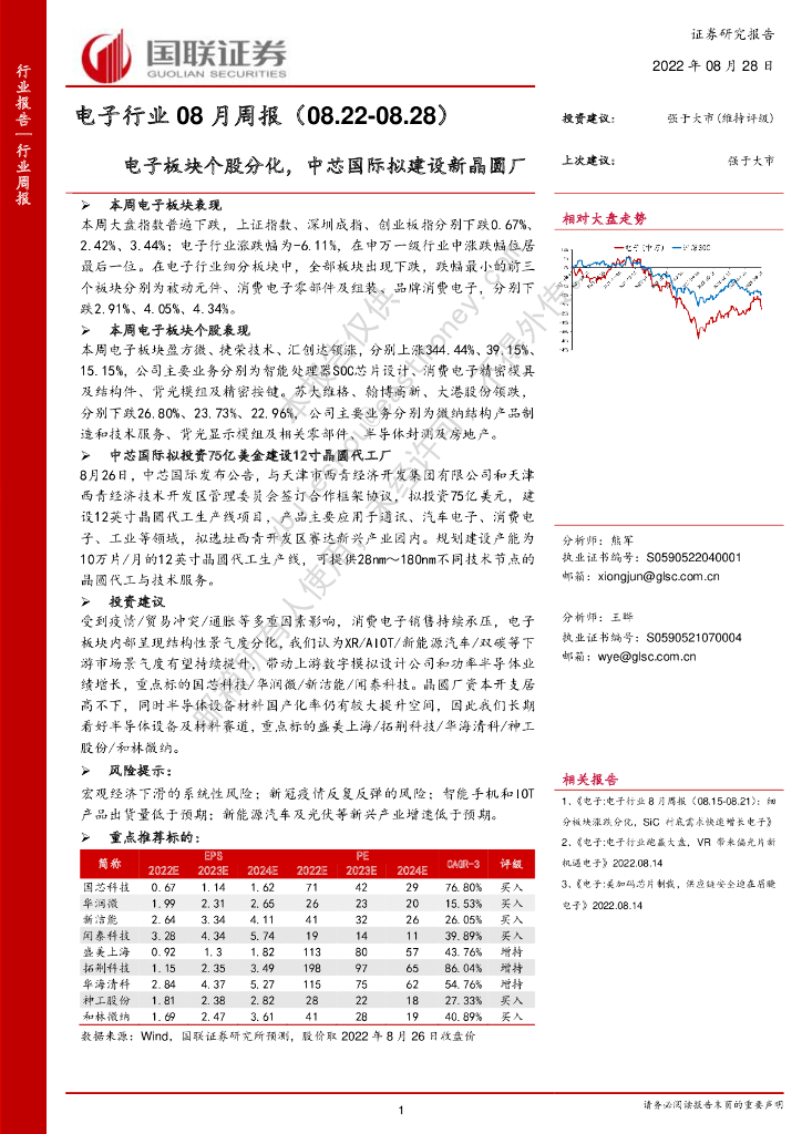 国联证券:电子行业08月周报:电子板块个股分化,中芯国际拟建设新晶圆厂.pdf