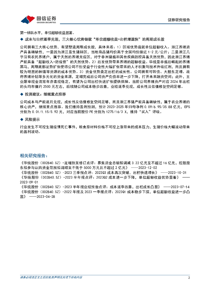 国信证券:华统股份(002840)-12月销售月报点评:2023年全年出栏超过230万头,预计成本有望再创新低.pdf