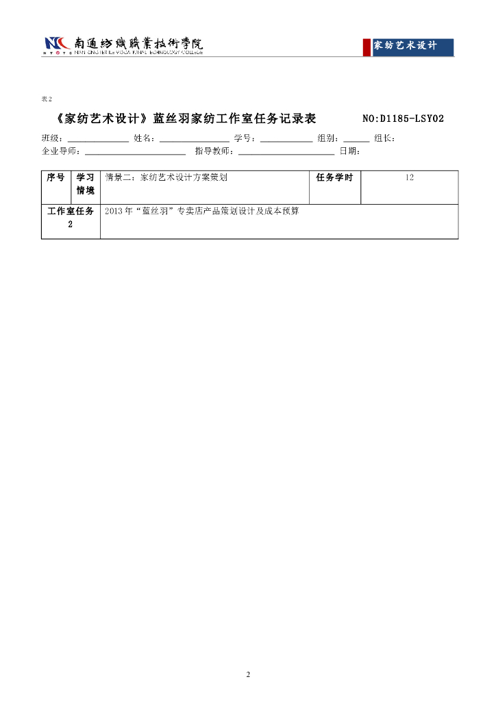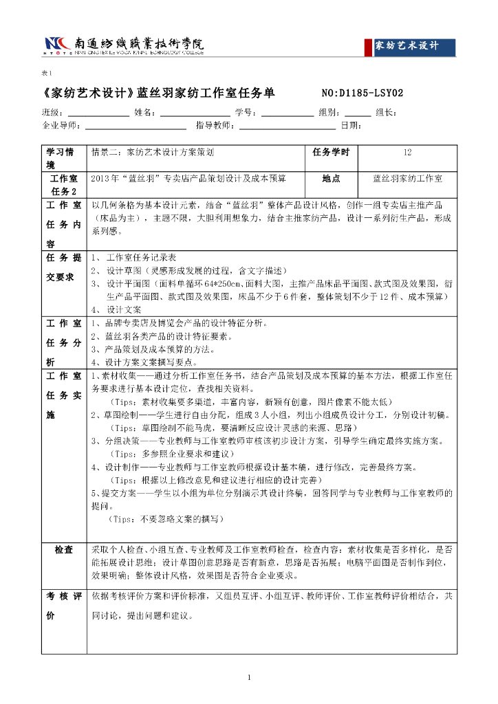 《家纺艺术设计》任务工单-情境二工作室任务单.pdf