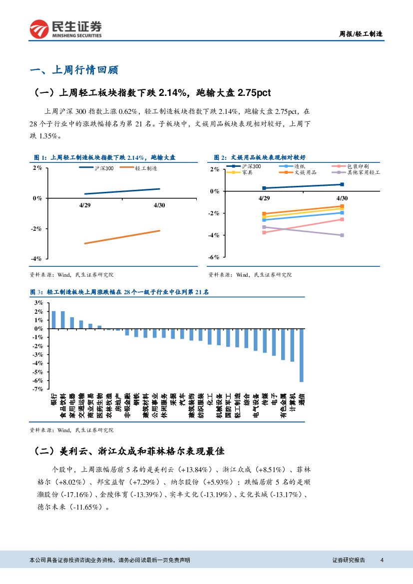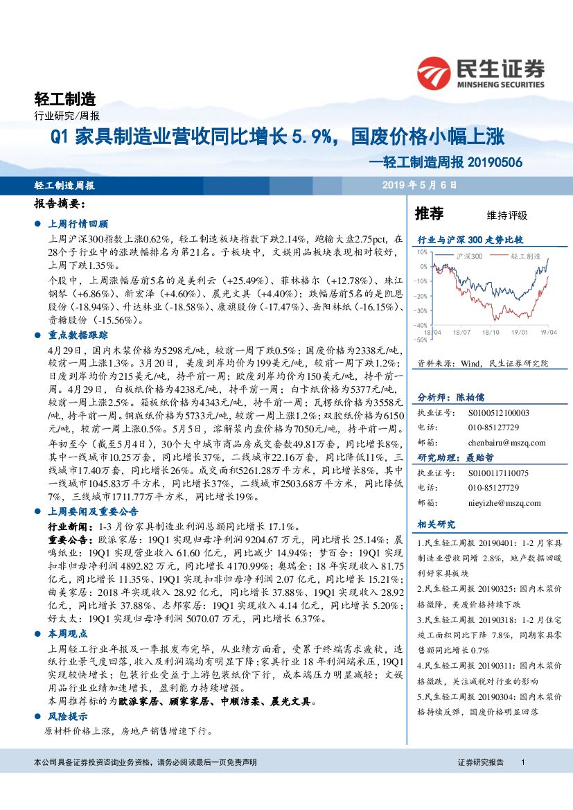 民生证券:轻工制造周报:Q1家具制造业营收同比增长5.9%,国废价格小幅上涨.pdf