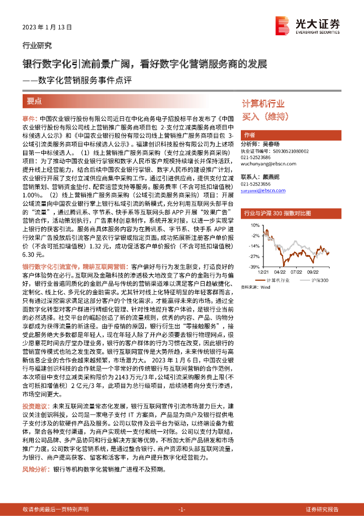 光大证券:计算机行业数字化营销服务事件点评:银行数字化引流前景广阔,看好数字化营销服务商的发展.pdf