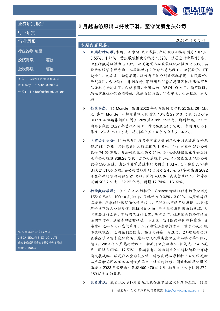信达证券:纺织服装行业周报:2月越南纺服出口持续下滑,坚守优质龙头公司.pdf