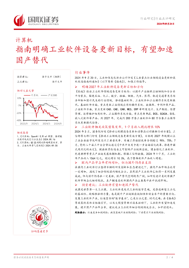 国联证券:计算机:指南明确工业软件设备更新目标,有望加速国产替代.pdf