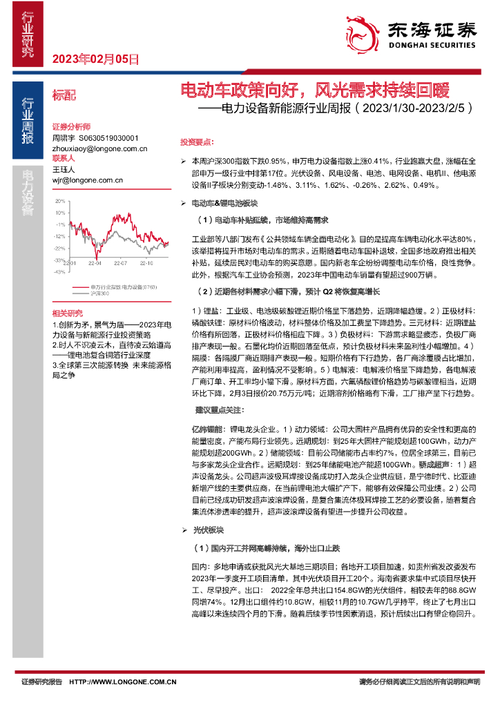 东海证券:电力设备新能源行业周报:电动车政策向好,风光需求持续回暖.pdf