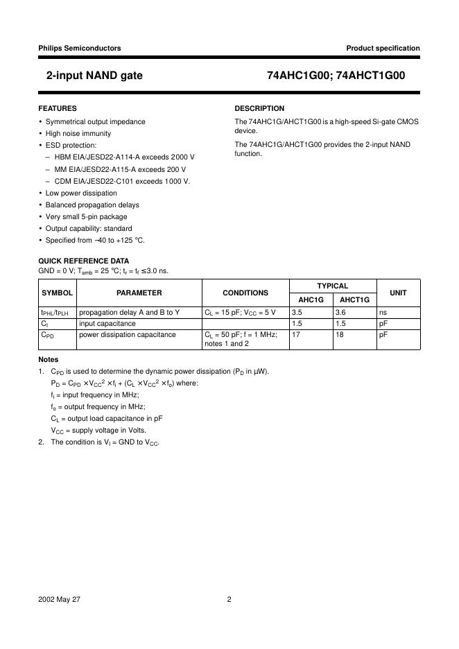 PHILIPS 74AHC1G00; 74AHCT1G00 2-input NAND gate 数据手册.pdf