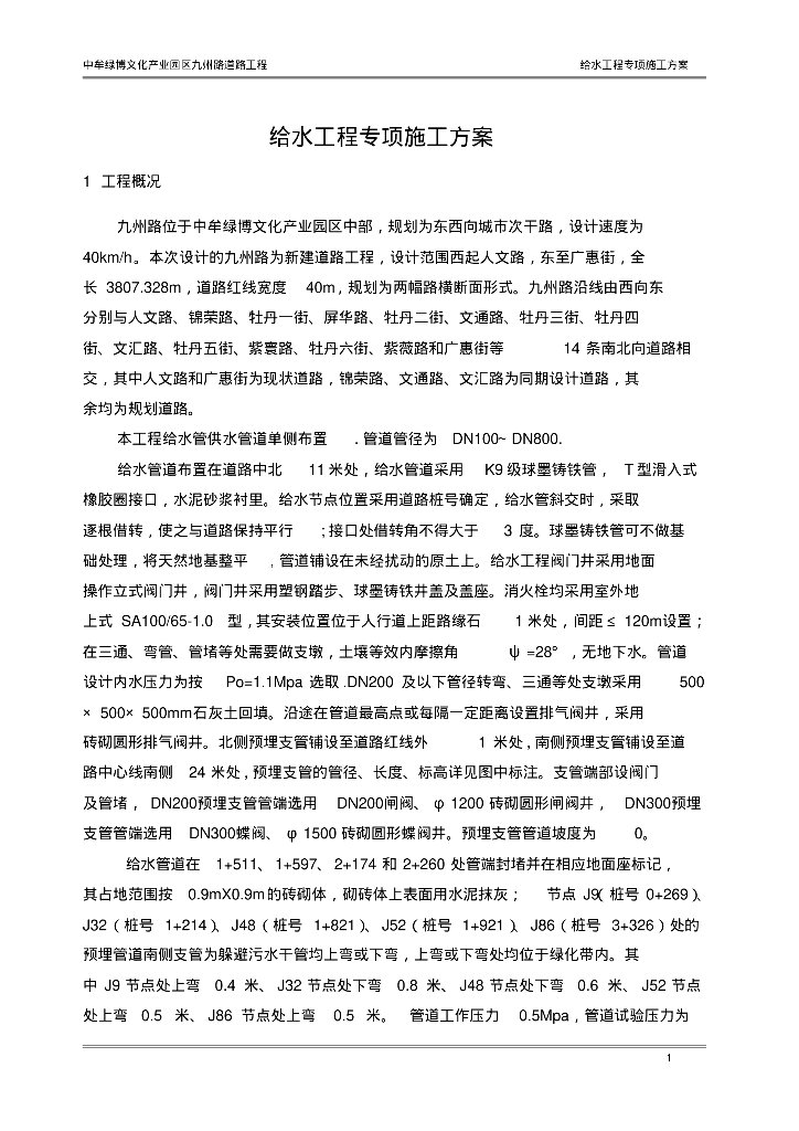 [河南郑州]中牟县产业园九州路给水工程专项施工方案.pdf