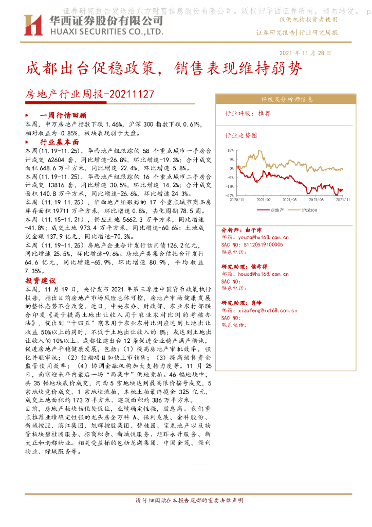 华西证券:房地产行业周报:成都出台促稳政策,销售表现维持弱势.pdf