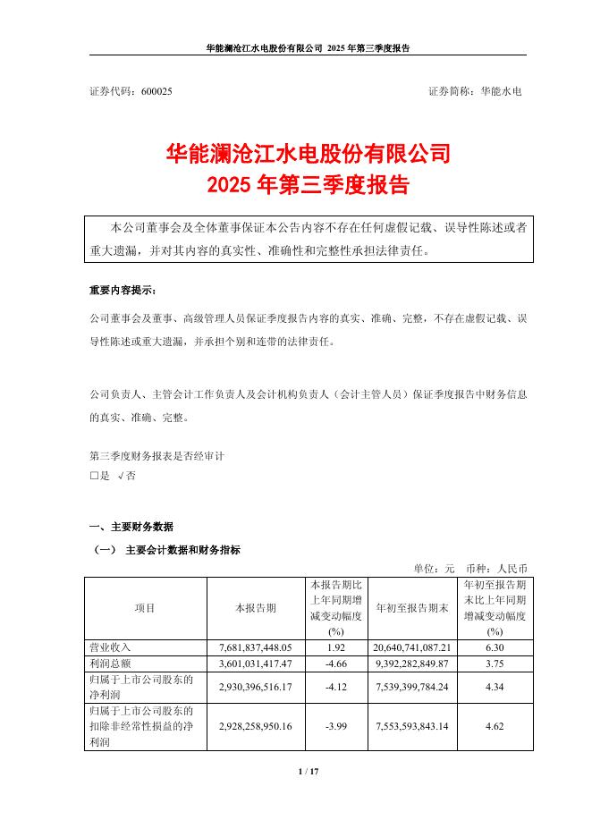 600025-华能水电:2025年第三季度报告.pdf