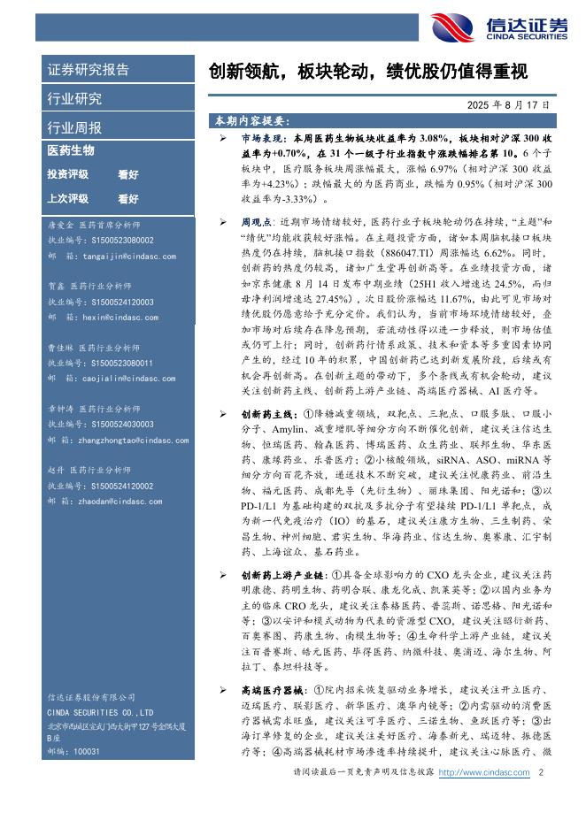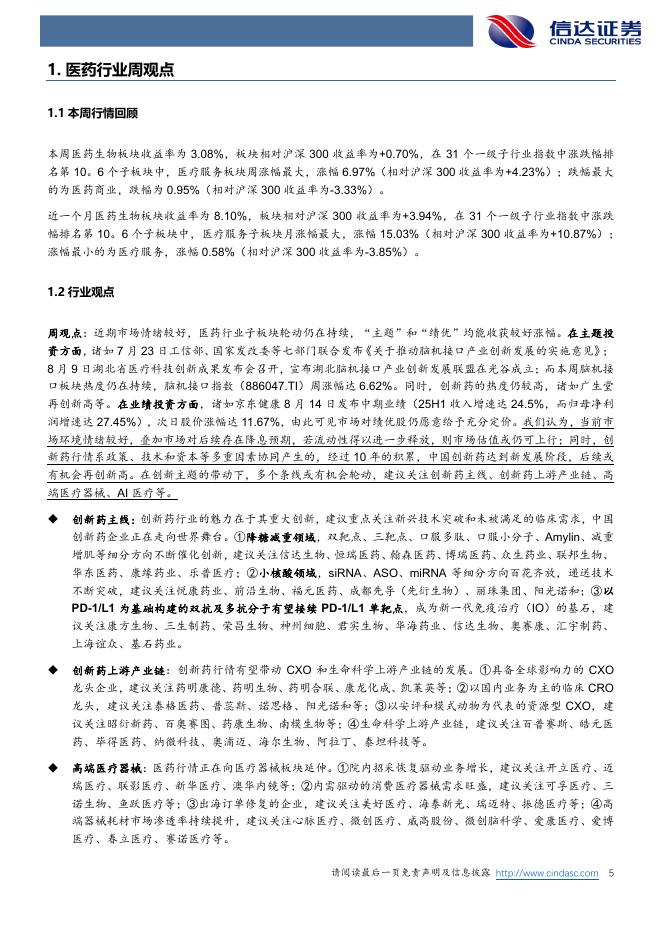 信达证券:医药生物行业周报:创新领航,板块轮动,绩优股仍值得重视.pdf