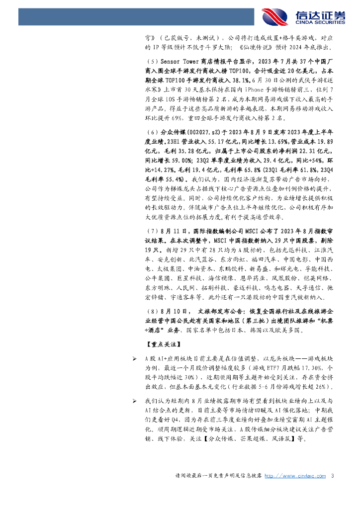 信达证券:传媒互联网及海外周观点:8月中报季关注业绩兑现,传媒板块前期调整较多符合低位配置风格.pdf