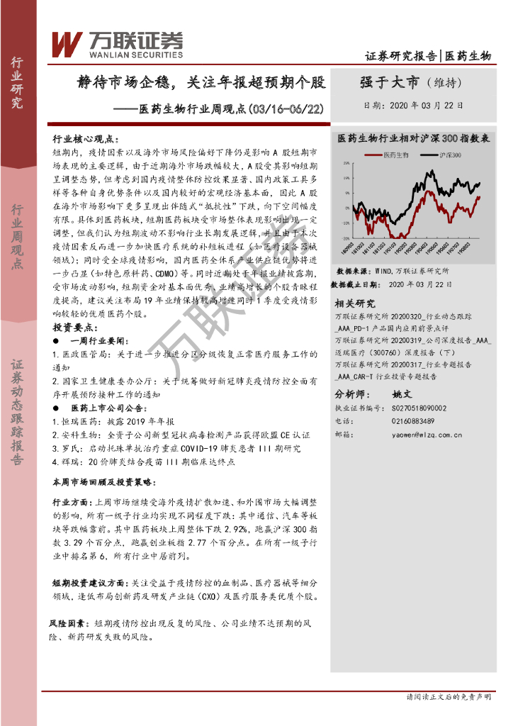万联证券:医药生物行业周观点:静待市场企稳,关注年报超预期个股.pdf