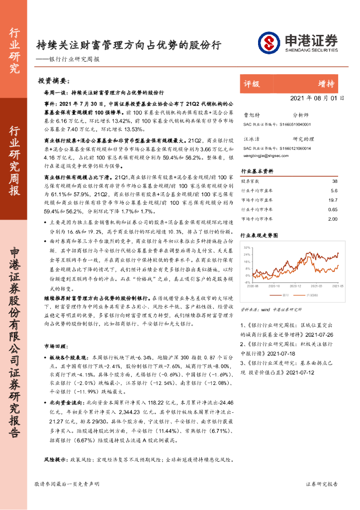 申港证券:银行行业研究周报:持续关注财富管理方向占优势的股份行.pdf