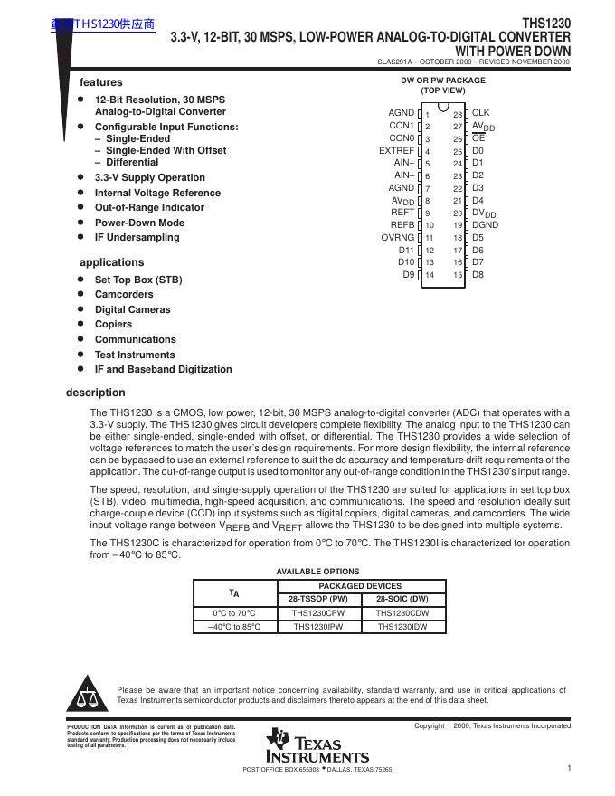 TEXAS INSTRUMENTS THS1230 数据手册.pdf