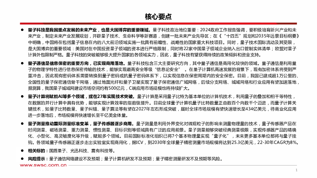 西南证券:量子科技专题:量子应用逐步落地,关注政策支持.pdf