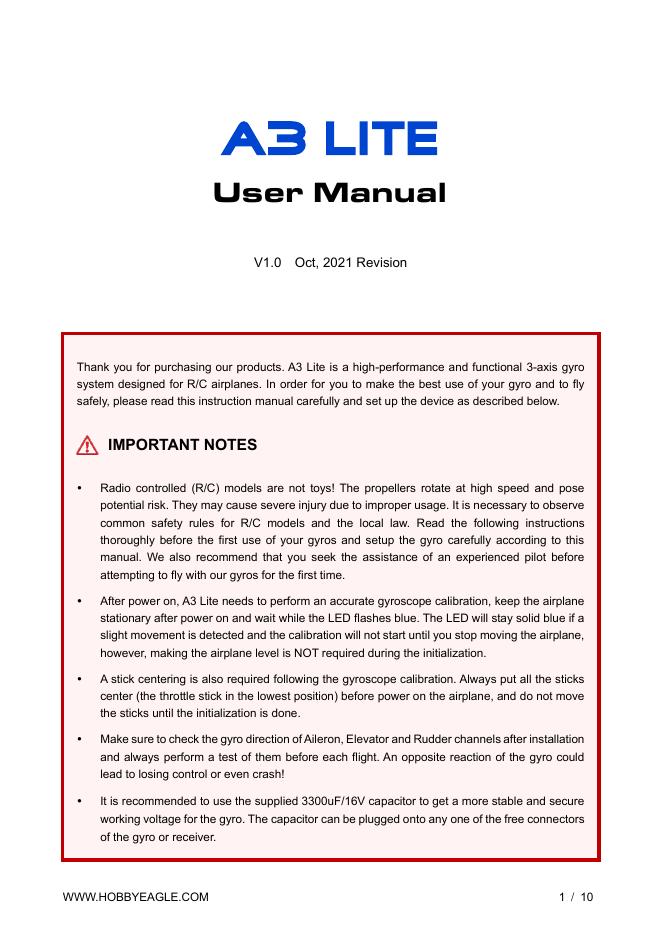 A3 Lite 3轴陀螺仪系统使用手册.pdf