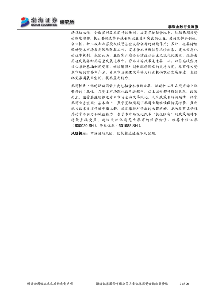 渤海证券:非银金融行业周报:资本市场迎来发展新阶段,券商板块将长期受益.pdf