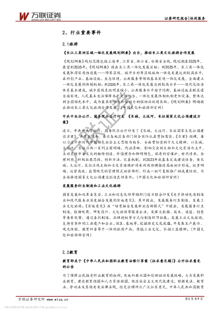 万联证券:休闲服务行业周观点报告:政策支持工业文化旅游,教育服务或可免征增值税.pdf
