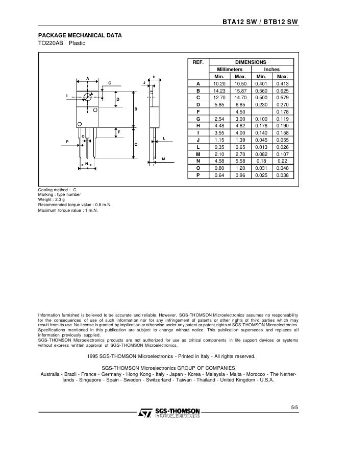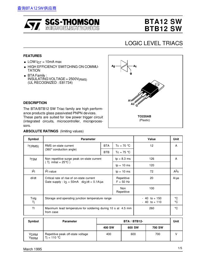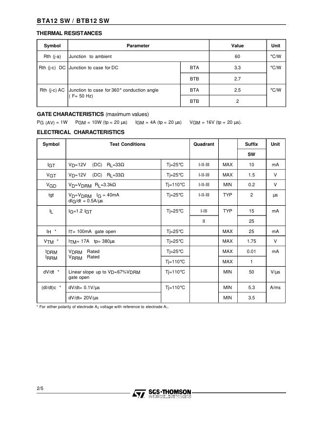 ST BTA12 SW/BTB12 SW 数据手册.pdf
