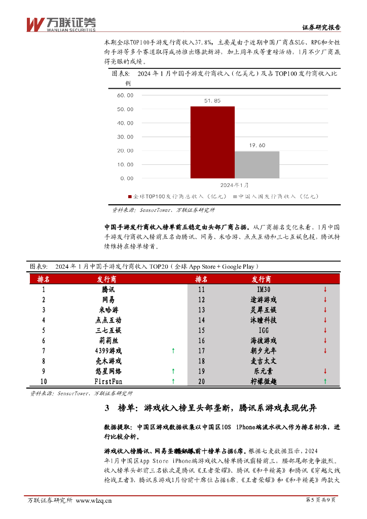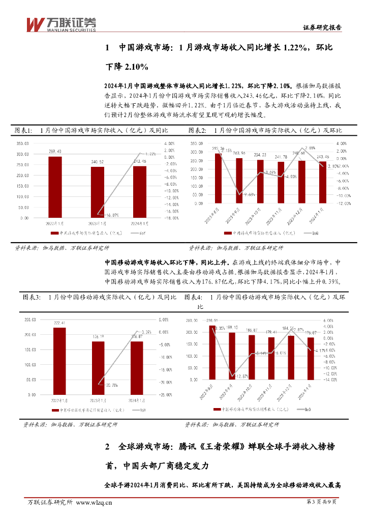 万联证券:传媒行业跟踪报告:1月游戏市场同比微增,预期向好,腾讯系游戏表现突出.pdf