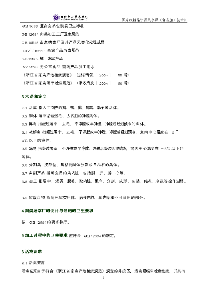 《食品加工技术》禽类屠宰操作规范.pdf
