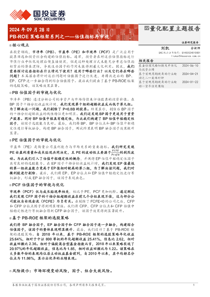 国投证券:估值指标再审视:PB-ROE策略框架系列之一.pdf