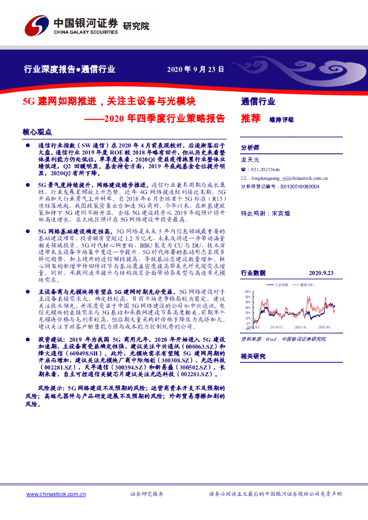 中国银河:通信行业2020年四季度行业策略报告:5G建网如期推进,关注主设备与光模块.pdf