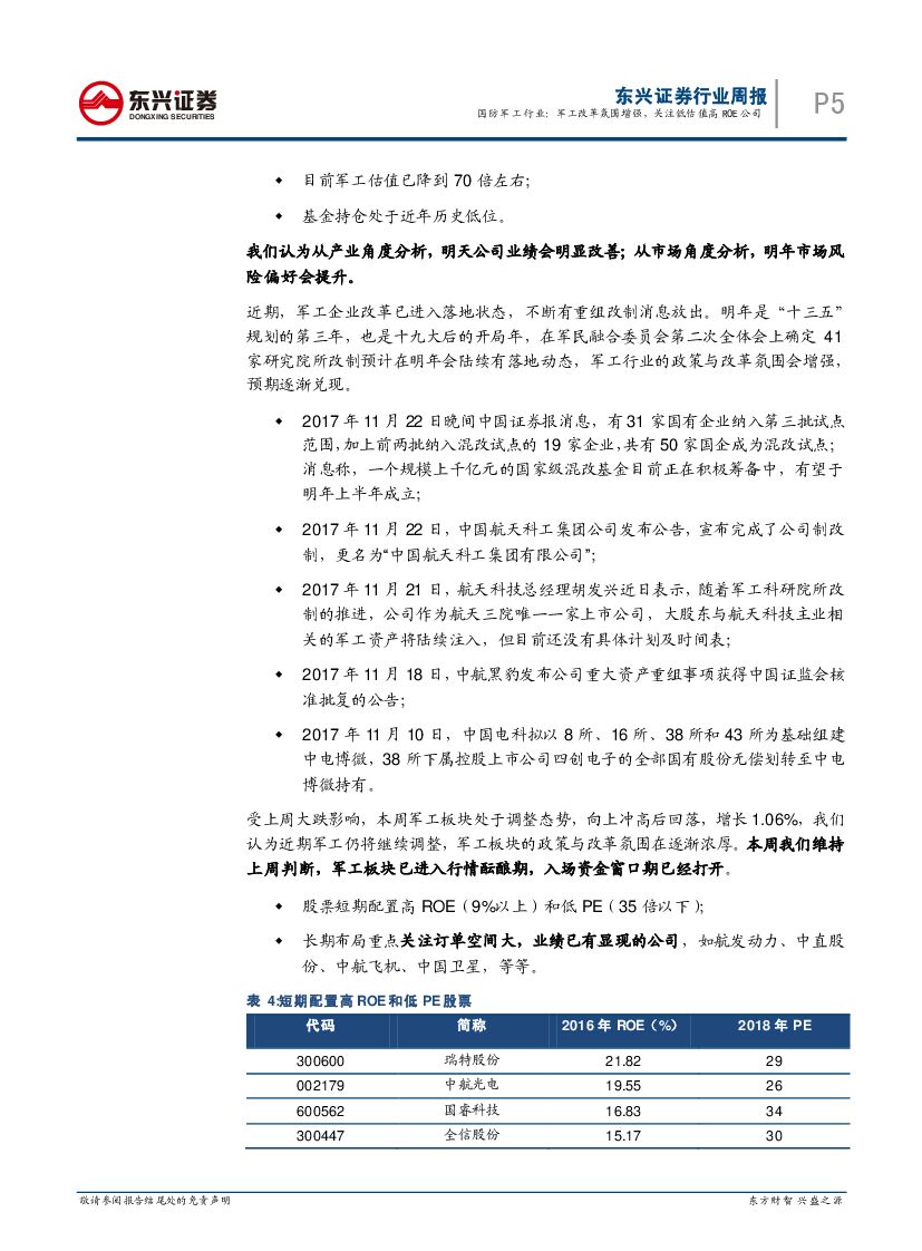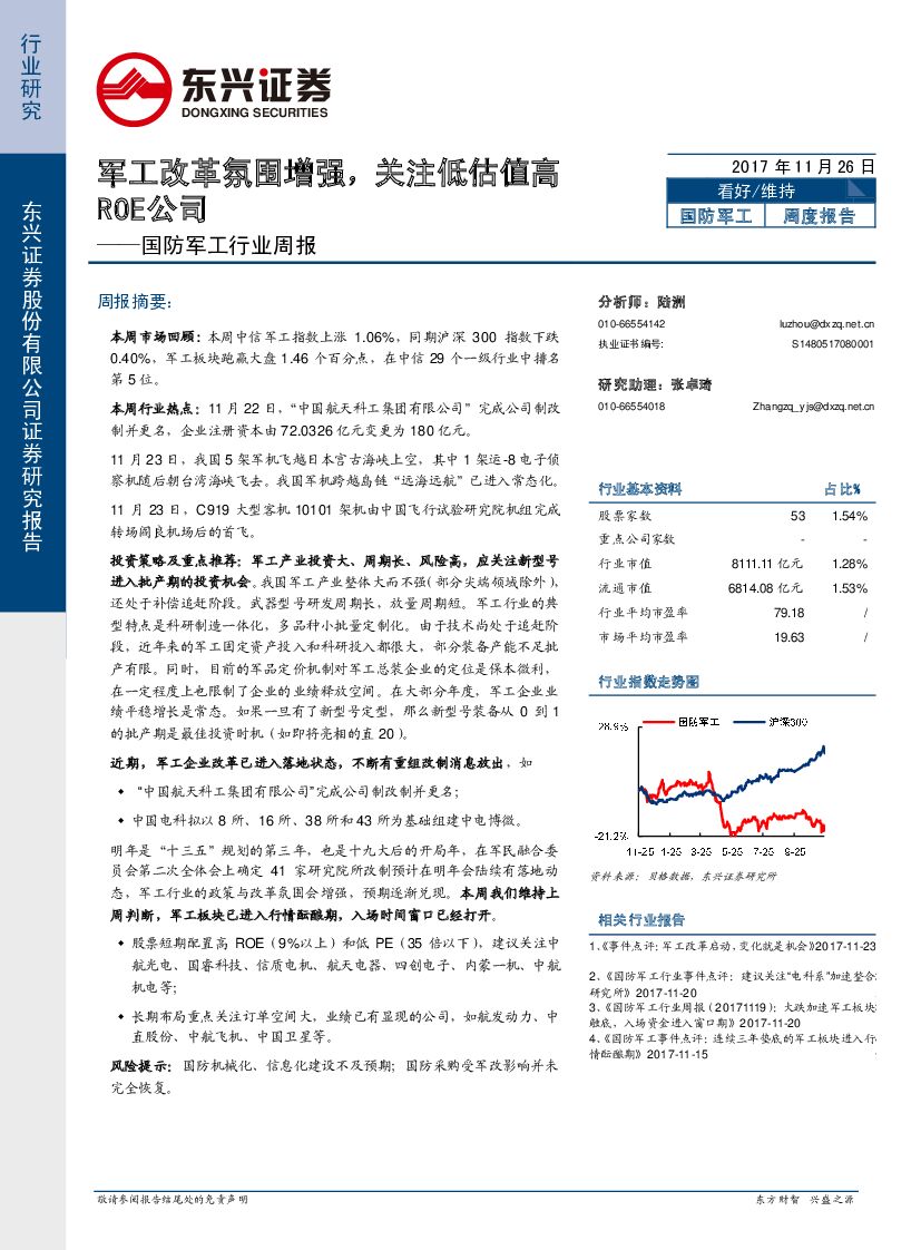 东兴证券:国防军工行业周报:军工改革氛围增强,关注低估值高ROE公司.pdf