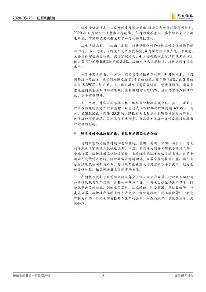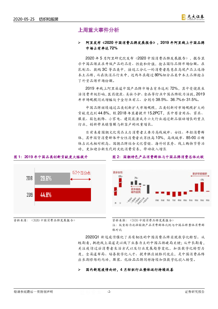 光大证券:纺织服装行业周报:《2020中国消费品牌发展报告》发布,4月纺织行业继续改善.pdf