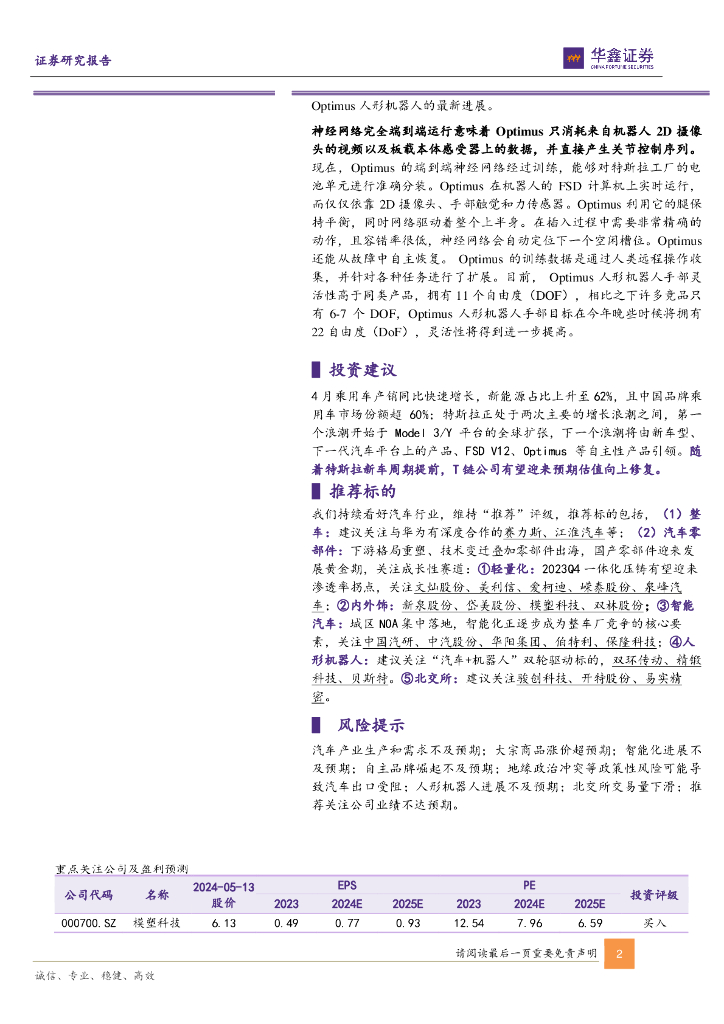 华鑫证券:汽车行业周报:4月乘用车产销同比快速增长,蔚来新品牌乐道本周正式发布,Optimus灵活度进一步提高.pdf