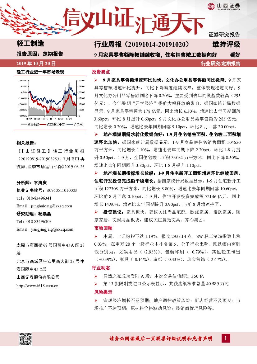 山西证券:轻工制造行业周报:9月家具零售额降幅继续收窄,住宅销售竣工数据向好.pdf