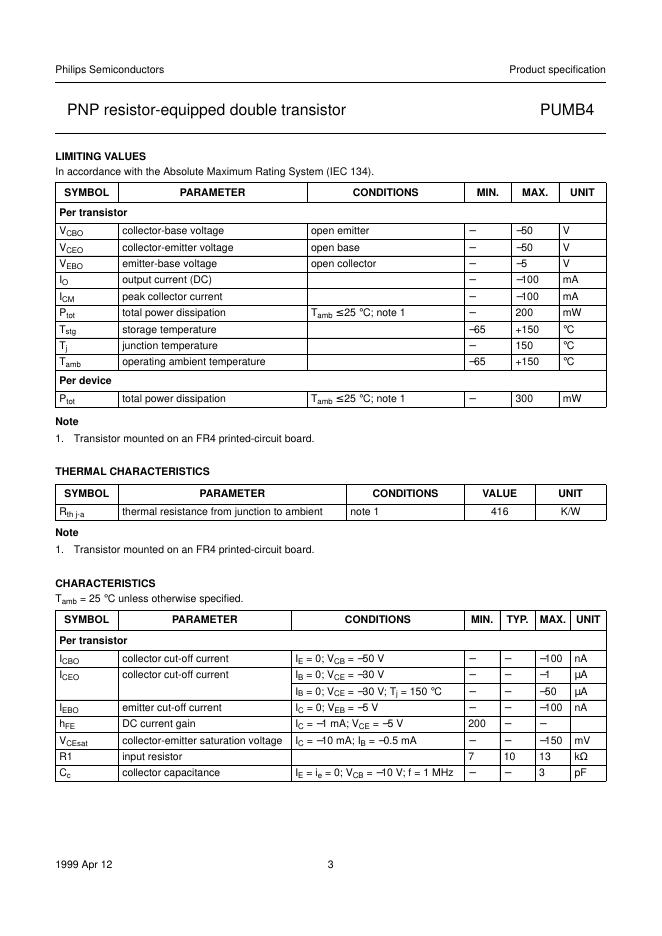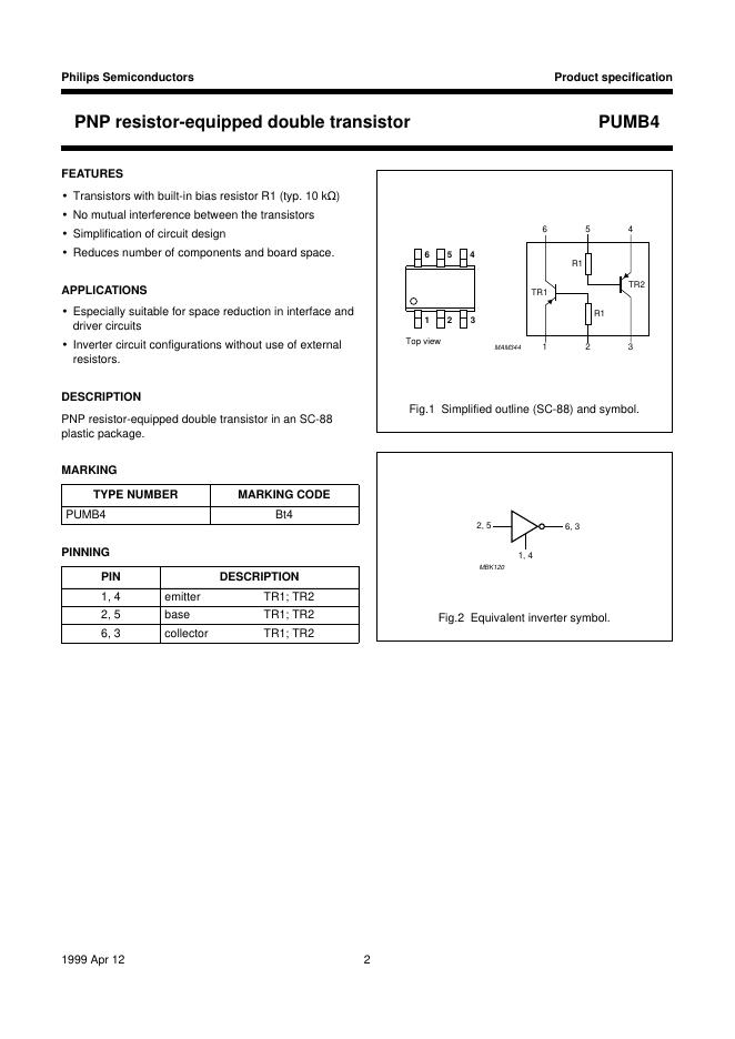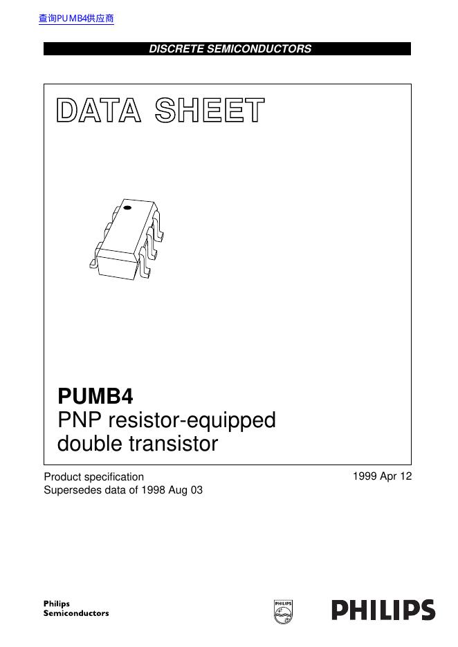 PHILIPS PUMB4 PNP resistor-equipped double transistor 数据手册.pdf
