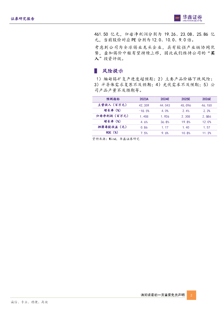 华鑫证券:锡业股份(000960)-公司事件点评报告:2024H1公司量价齐升,带动利润增长.pdf